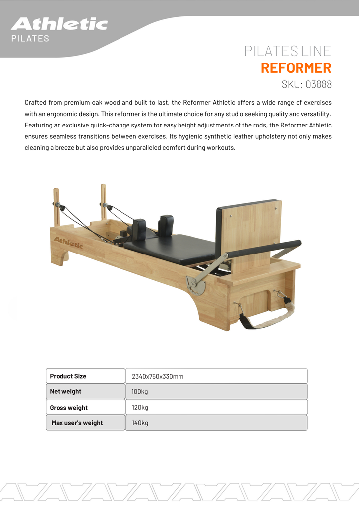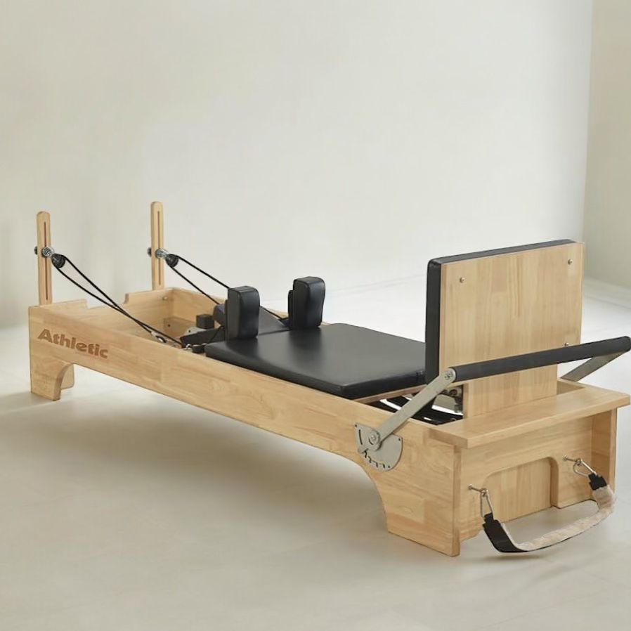 The Reformer Athletic is crafted from premium oak wood for strength, durability, and timeless aesthetics. Designed with ergonomic precision and a wide range of exercise options, it is the ideal reformer for studios that demand both quality and versatility.
