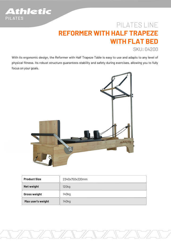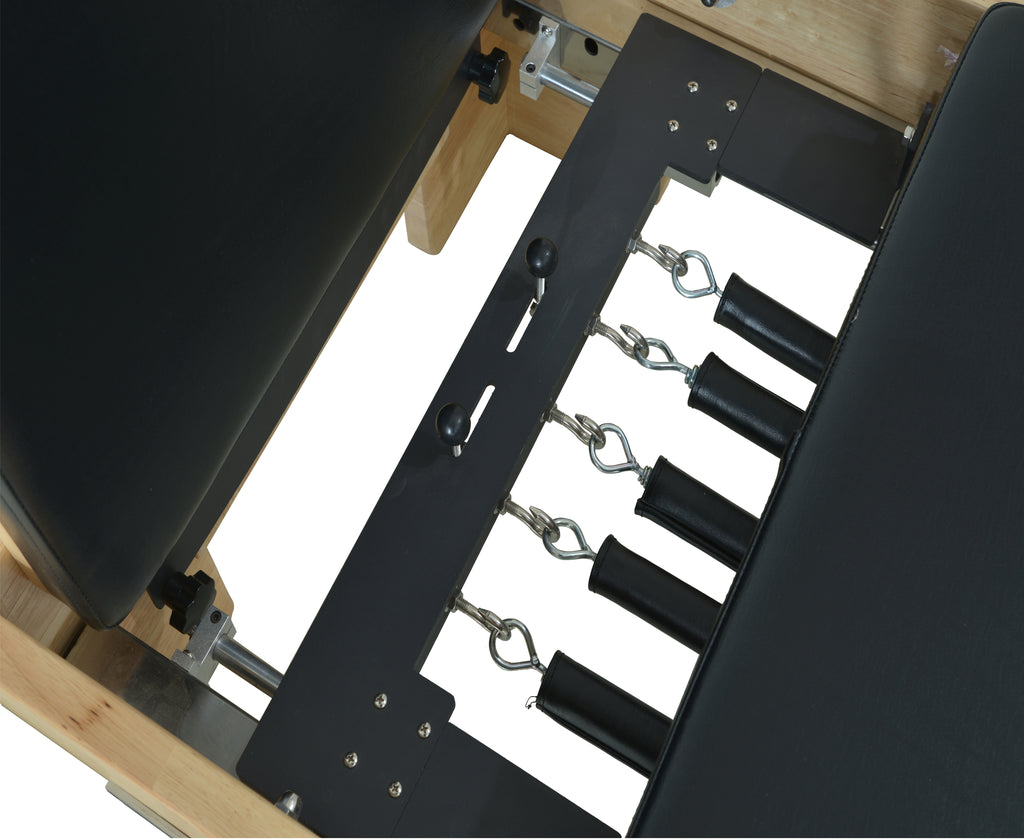 The Reformer with Half Trapeze + Flat Bed combines versatility, comfort, and safety in one professional-grade design. Built from premium oak wood, it offers exceptional durability and stability for all fitness levels. The half trapeze system enhances functionality while the flat bed platform ensures a wide range of exercise options for strength, flexibility, and rehabilitation.