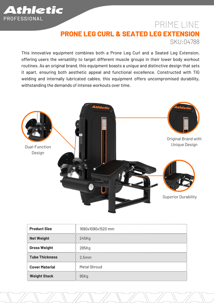 - Dual-Function Design: This innovative equipment combines both a Prone Leg Curl and a Seated Leg Extension, offering users the versatility to target different muscle groups in their lower body workout routines.