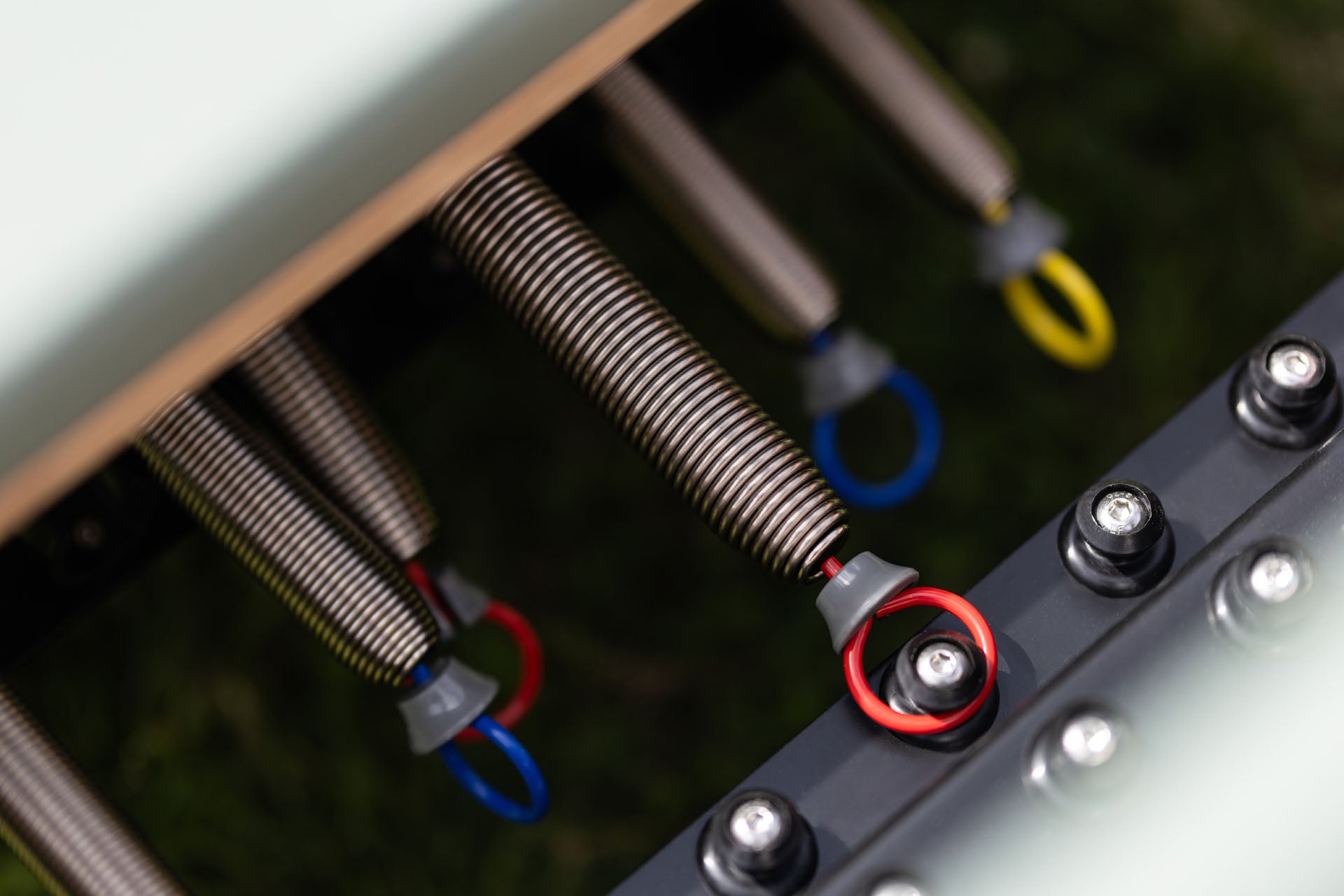 Springs: 6 hardened high-carbon steel springs with German-sourced wire (2x strong, 2x medium, 2x light) for precise resistance adjustment